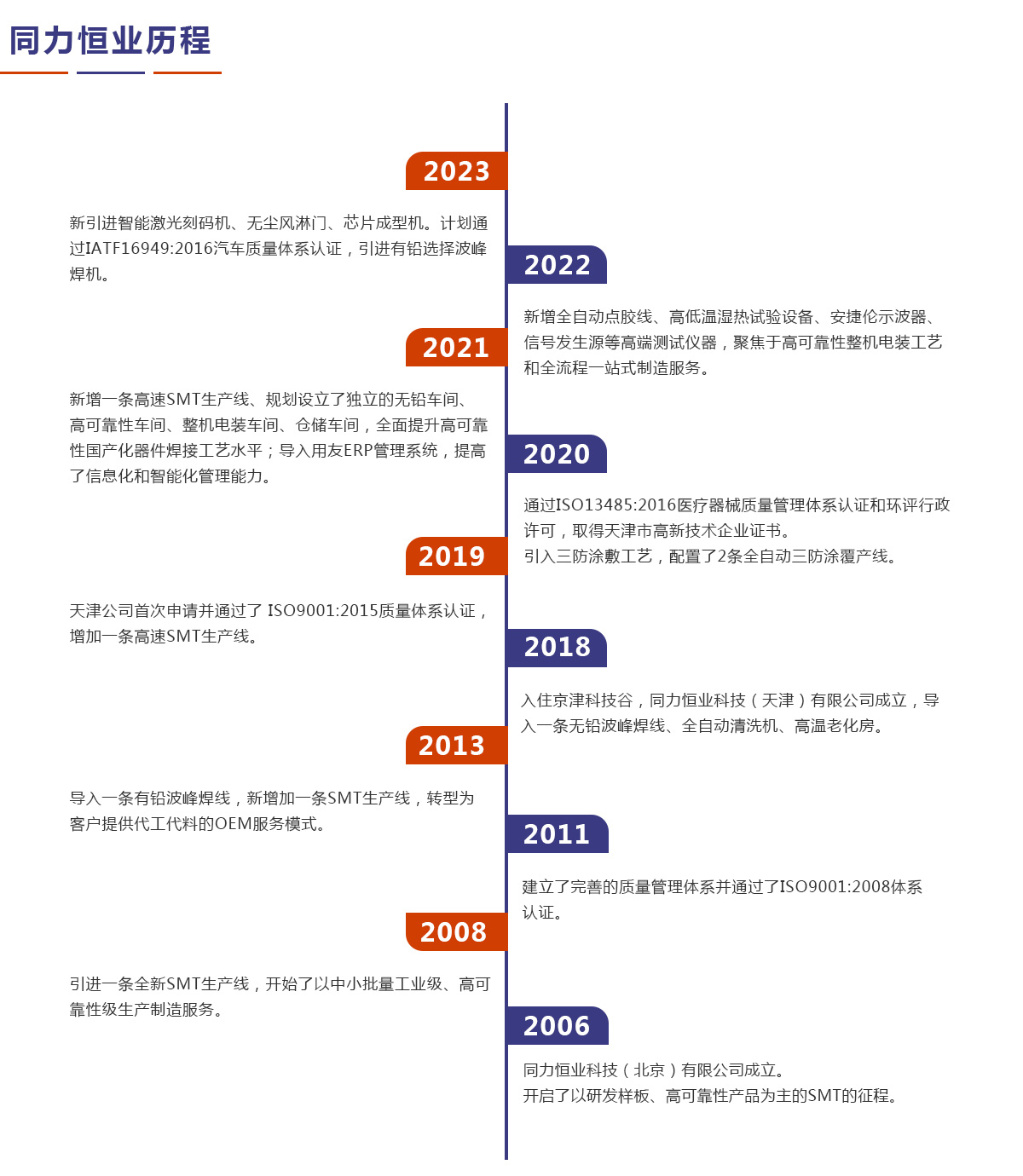 同力恒業(yè)科技成立于2006年,專業(yè)從事電子制造服務(wù)(EMS),專注于為客戶提供產(chǎn)品開發(fā)、工藝設(shè)計(jì)、物料配套、精密貼裝、插件焊接、三防涂敷、整機(jī)電裝、測試?yán)匣约鞍b運(yùn)輸、售后維修等整個(gè)供應(yīng)鏈解決方案。公司定位于高可靠性及中高端產(chǎn)品電子制造服務(wù),在通訊導(dǎo)航、儀器儀表、醫(yī)療設(shè)備、汽車電子等領(lǐng)域具有豐富的一站式制造服務(wù)經(jīng)驗(yàn)。
